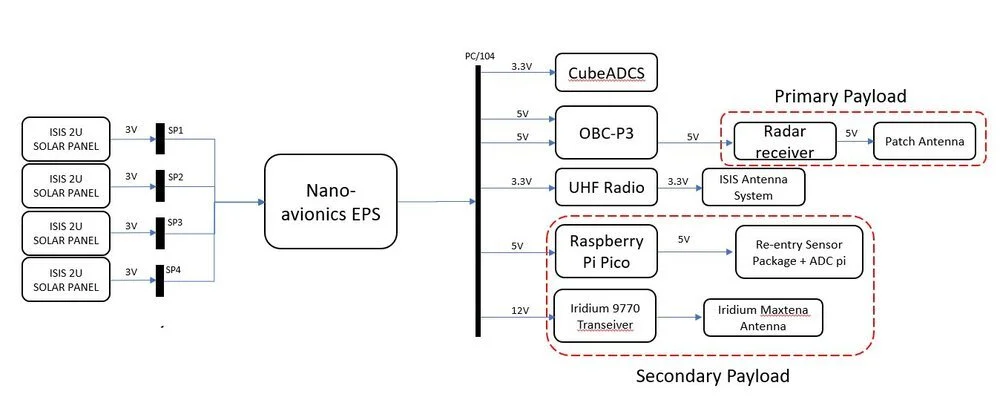 The design of the secondary payload at this stage therefore consists of a passive aerodynamic stabilisation system which utilises the CubeSats solar panels for stability, as well as a communications platform to allow for data transmission via the Iridium constellation.